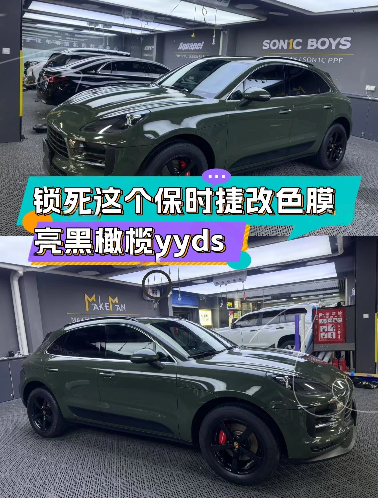 谁能想到,保时捷 Macan 贴了亮黑橄榄改色膜,直接从 “都市型男” 变 “暗夜战神”!